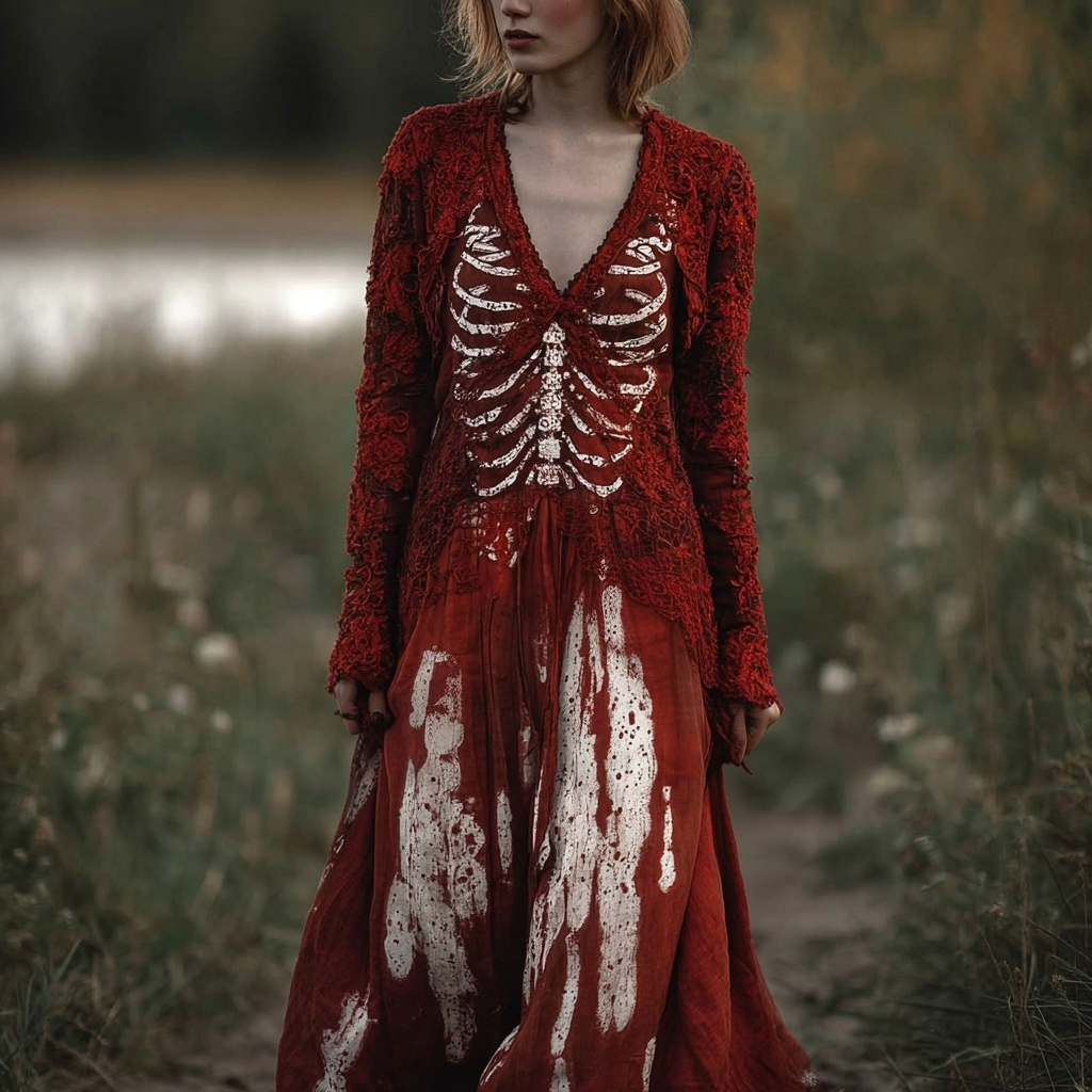 Halloween Skeleton Blood Stain Inspired Spooky Maxi Dress