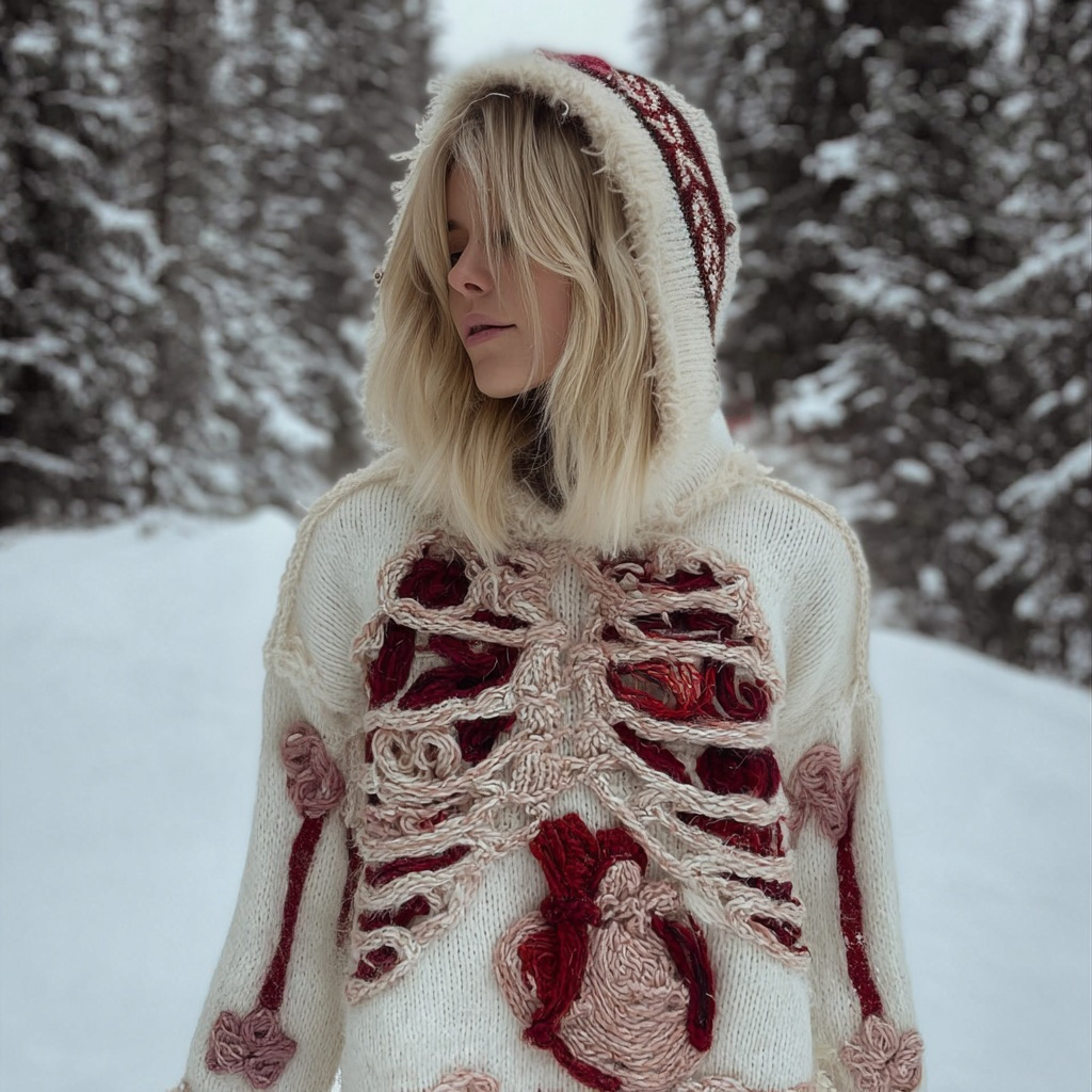 Vintage Halloween Anatomy Art Knit Cozy Hooded Sweater