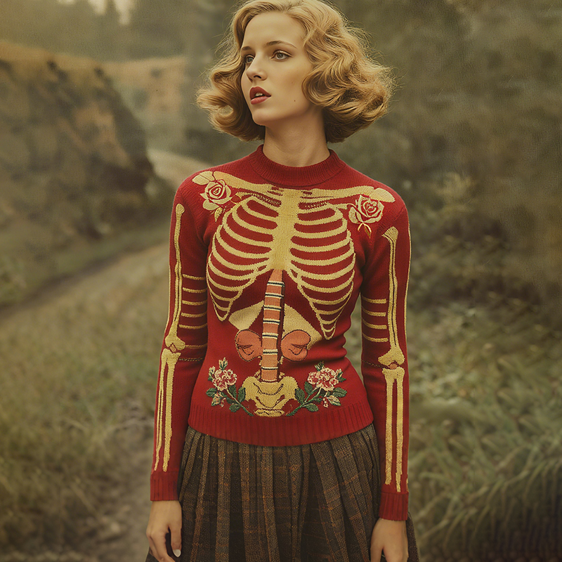 Vintage Halloween Anatomy Art Rose Jacquard Knitted Sweater