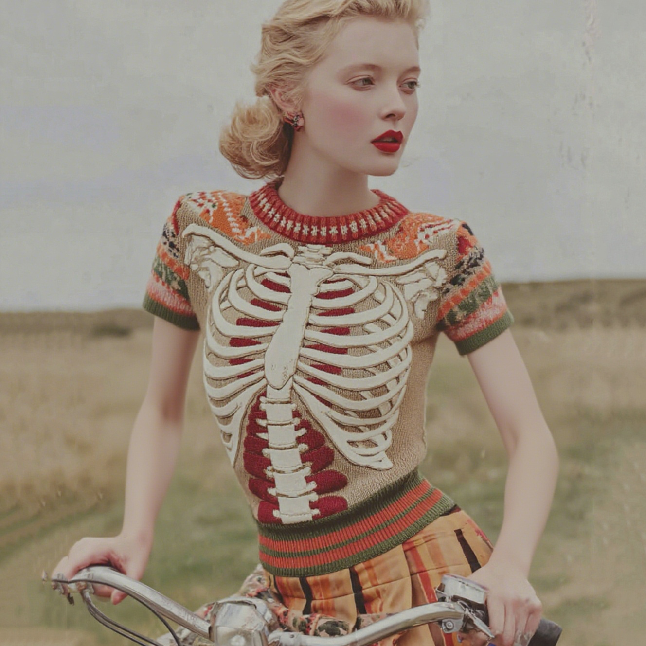 Vintage Halloween Anatomy Art Short Sleeve Chunky Knitted Sweater