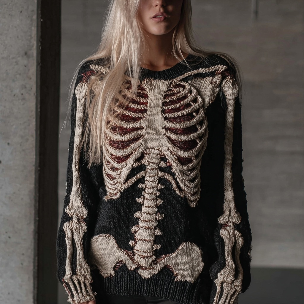 Vintage Halloween Skeleton Art Knit Comfy Sweater